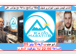 الشاب فيصل منيون الجزائري ضيف حلقة برنامج ساعة مع يونس على راديو حبايب يوم الأربعاء 18 يوليوز 2018 الساعة 22:00 ليلا بتوقيت المغرب